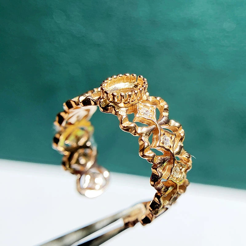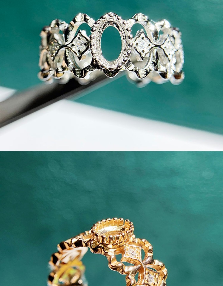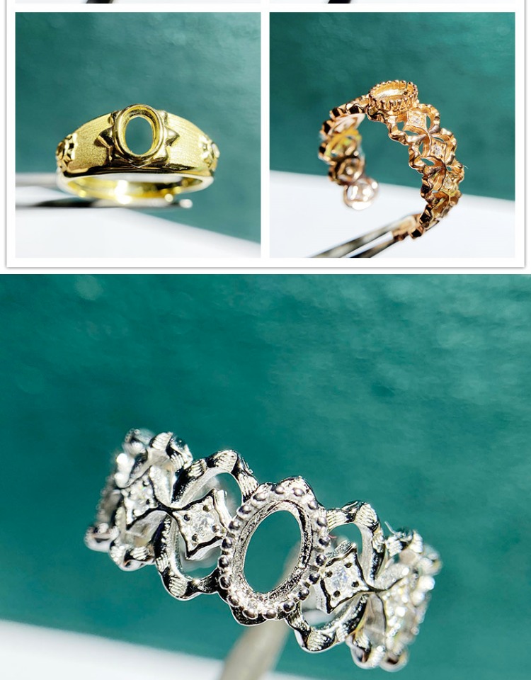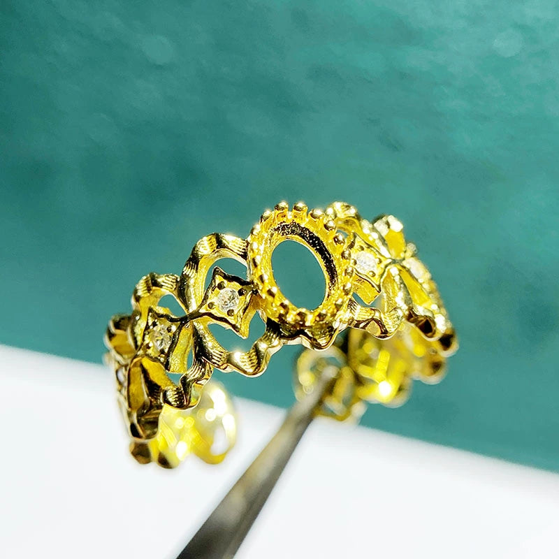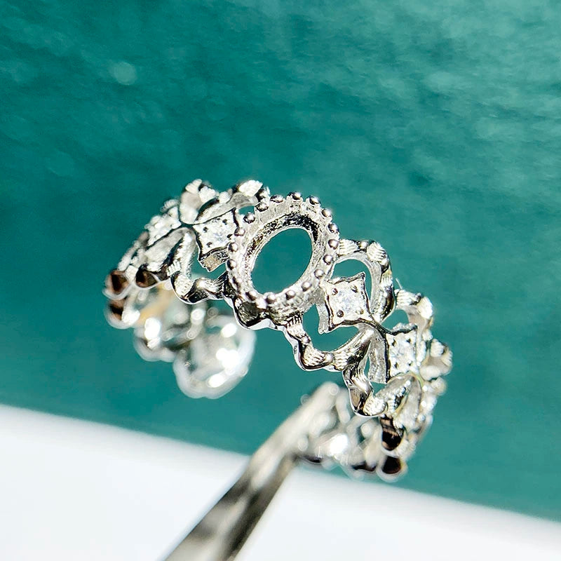 This new adjustable bezel ring setting is crafted from high-quality S925 sterling silver and designed for 4×6mm oval stones. Featuring a retro hollow fashion design with an adjustable open-ring structure, it is stylish, elegant, and perfect for DIY jewelry making and custom gemstone mounting.