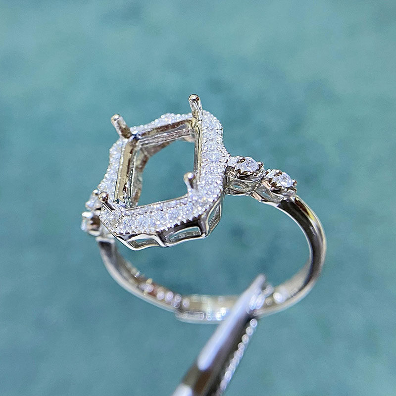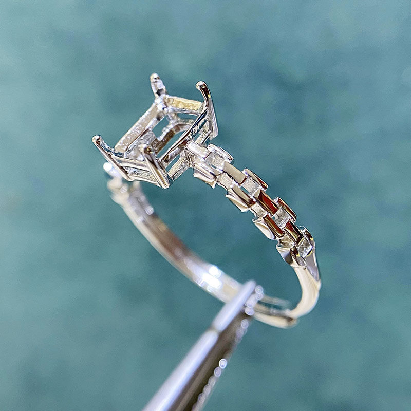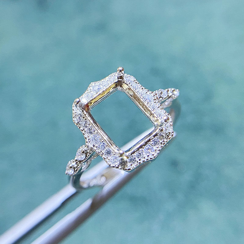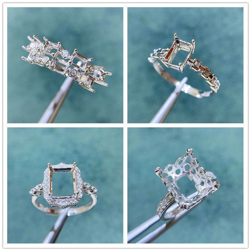 Rectangle 3×4 mm / 5×7 mm / 10×12 mm S925 Sterling Silver Adjustable Ring Setting, for Women, Unset Stone Mount, Empty Ring Setting, New Design Design