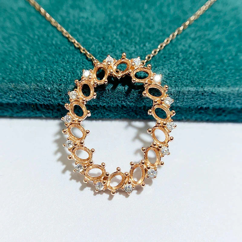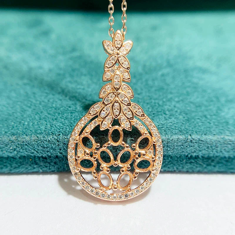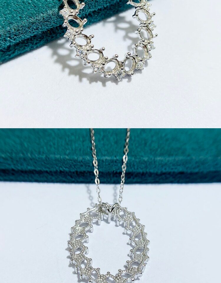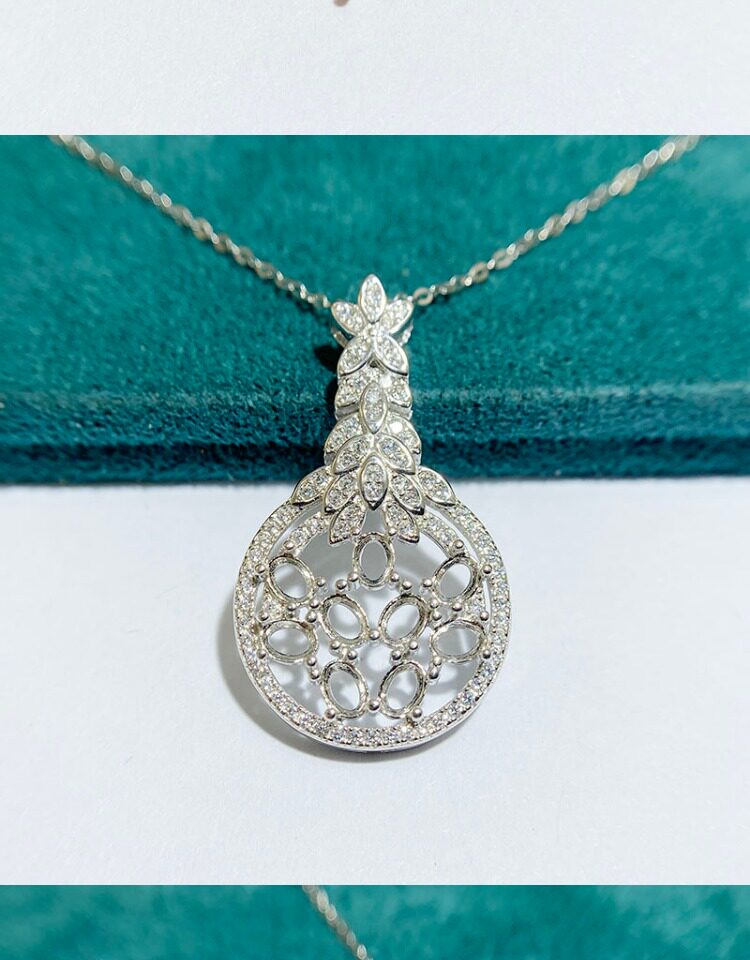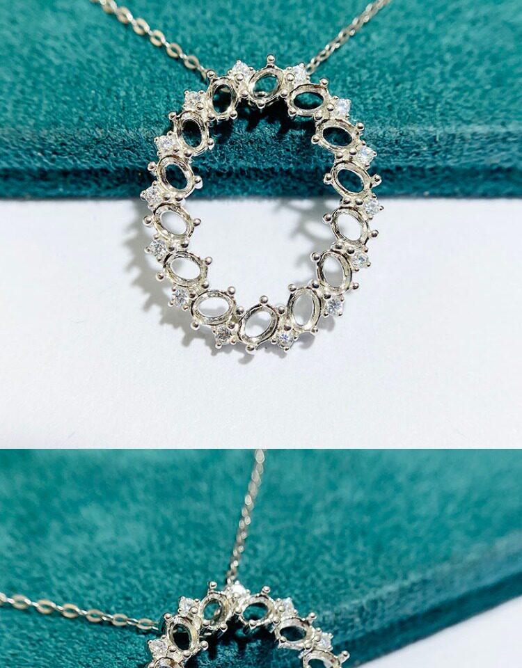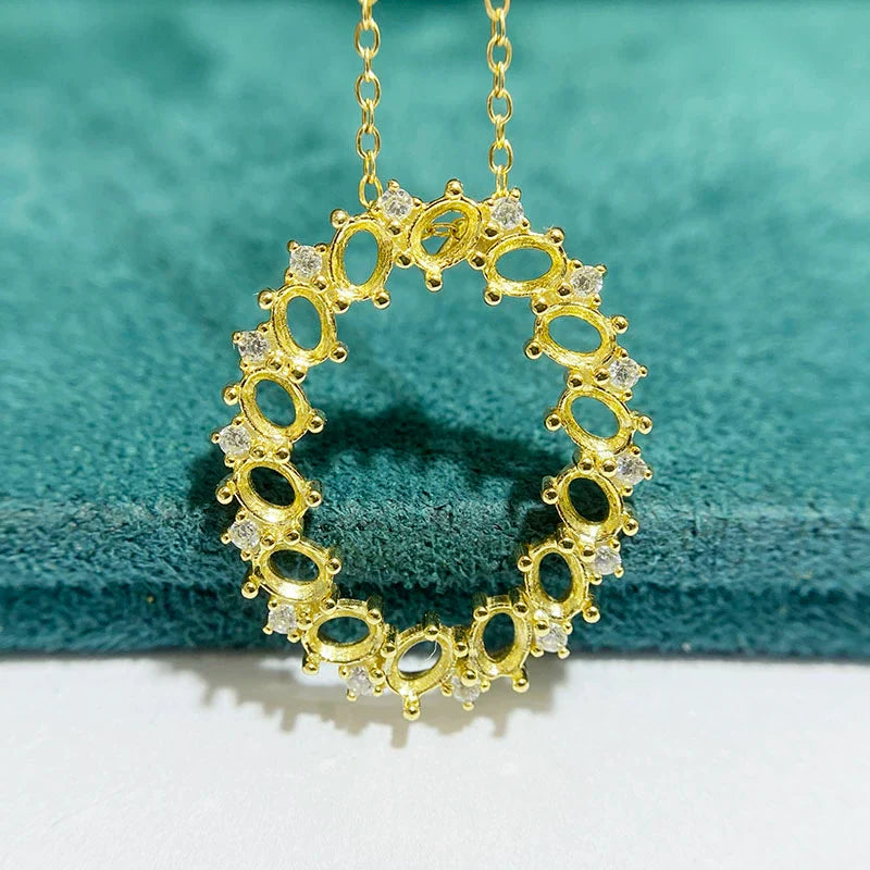 Oval 3×4 mm S925 Sterling Silver Pendant Setting, Unset, For Women, Cluster Setting