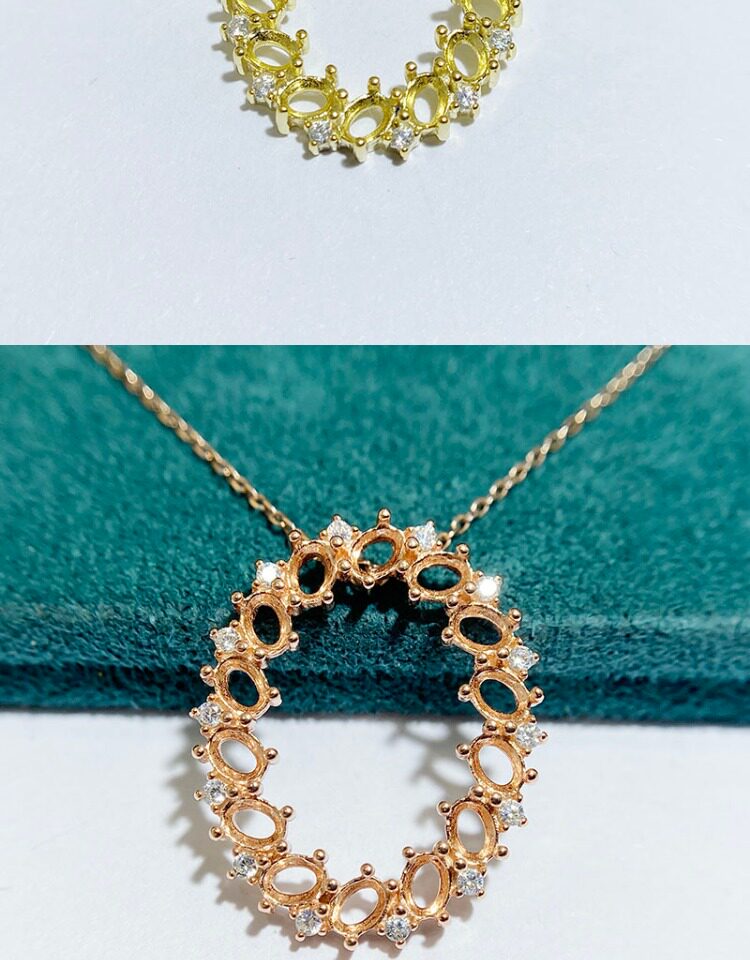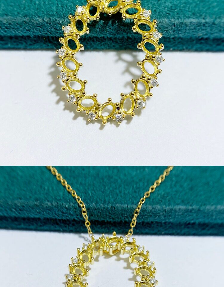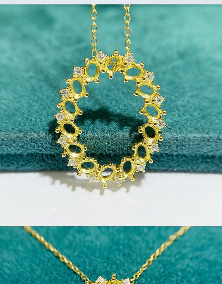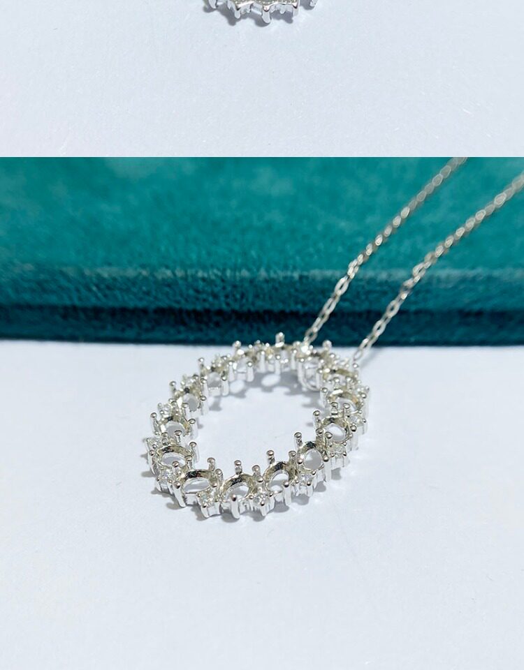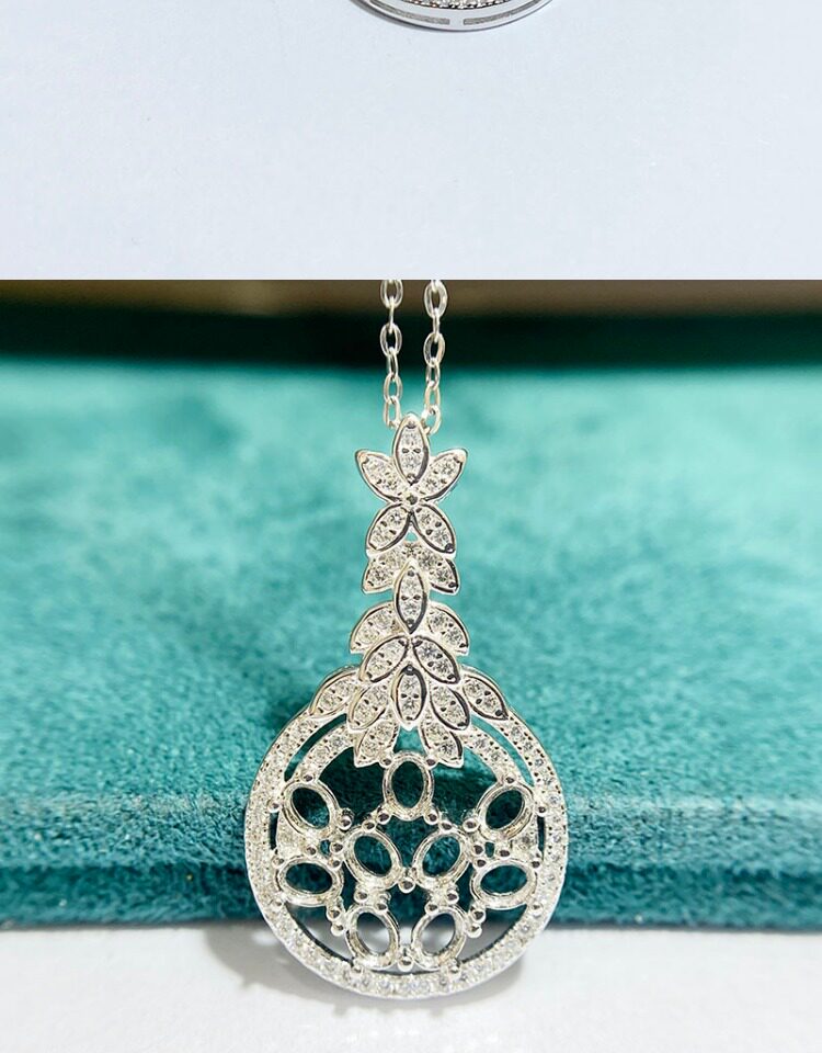 Oval 3×4 mm S925 Sterling Silver Pendant Setting, Unset, For Women, Cluster Setting
