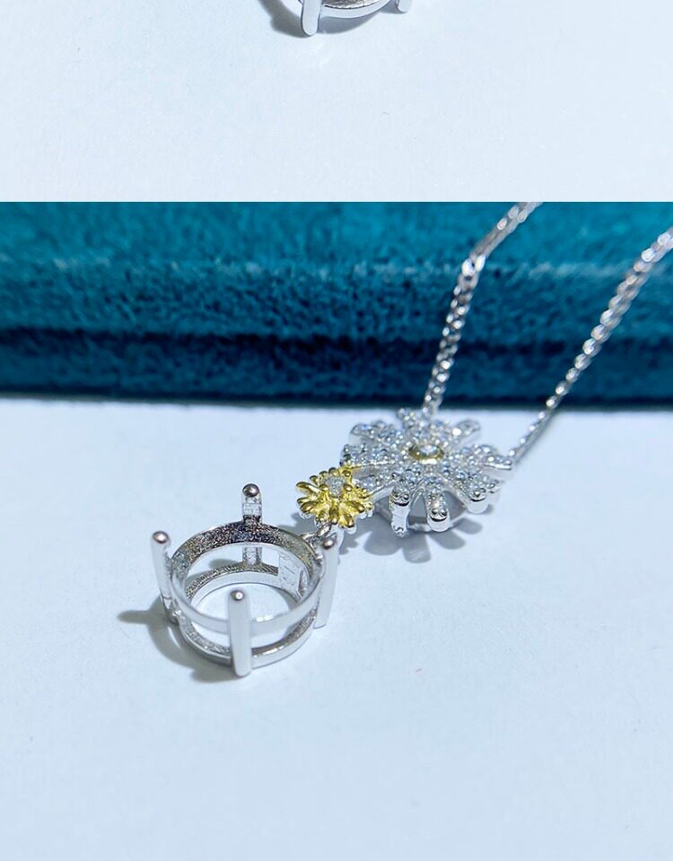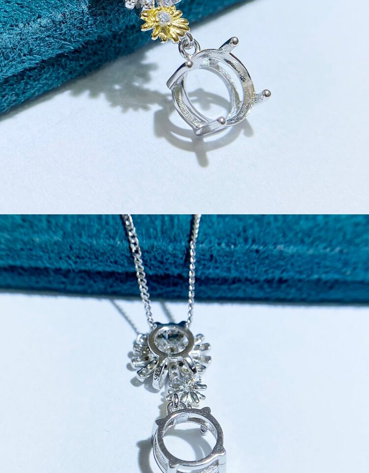 S925 sterling silver Pendant Setting jewelry setting for DIY jewelry making and custom designs. Shape: Round, Flower. Compatible stone size: 8 mm. This empty mount is ideal for setting gemstones, repairs, and handcrafted jewelry projects. Suitable for jewelry makers, studios, and wholesale buyers.