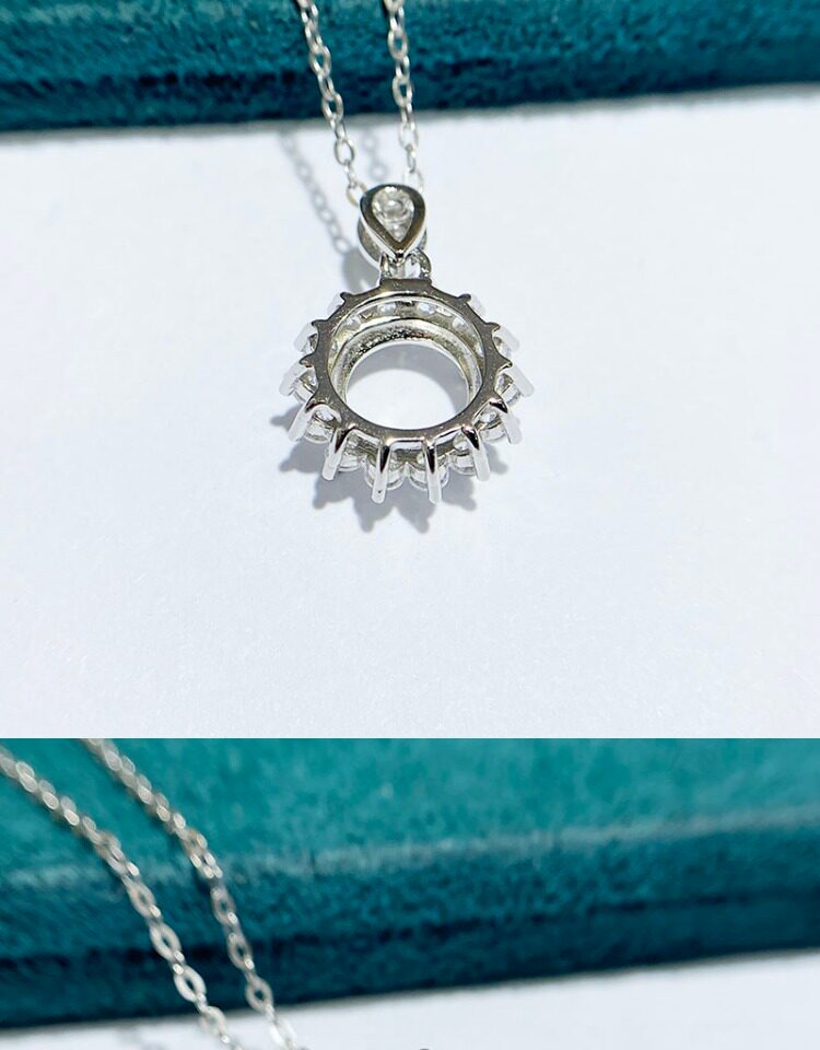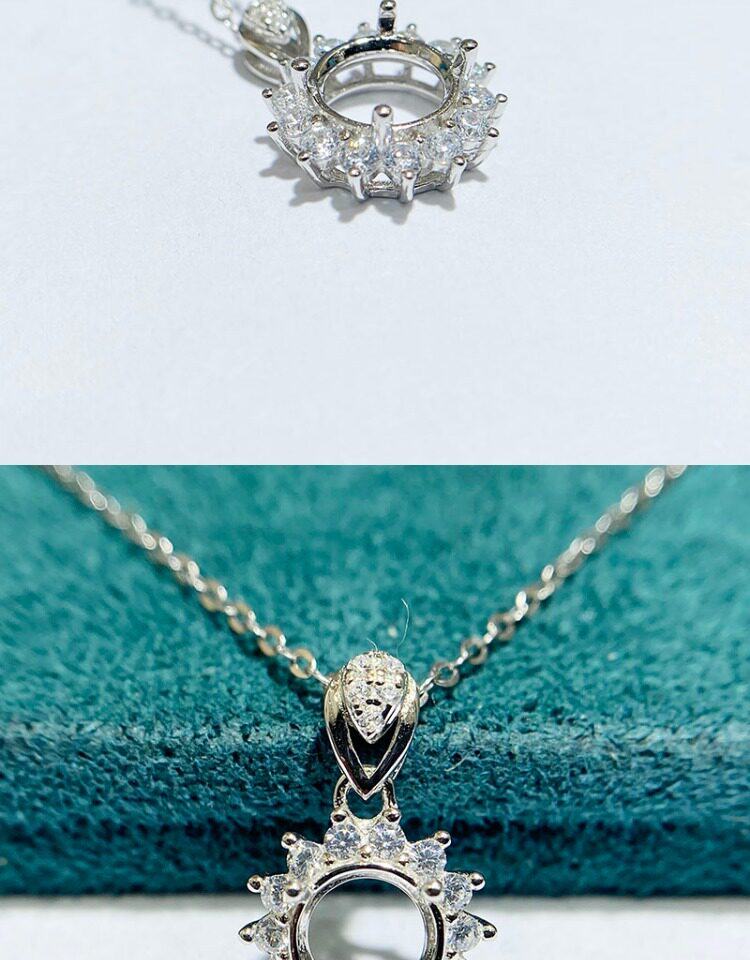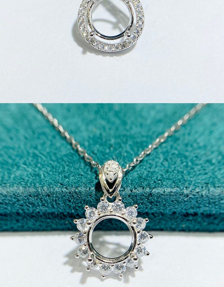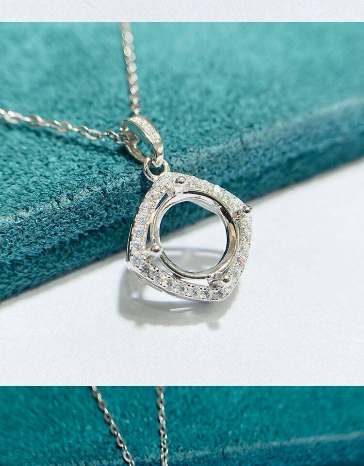 This product does not include any stones or chains, sold as an empty pendant setting only. The silver setting is smooth and refined, with secure prongs that hold your gemstone or moissanite firmly while enhancing its brilliance.