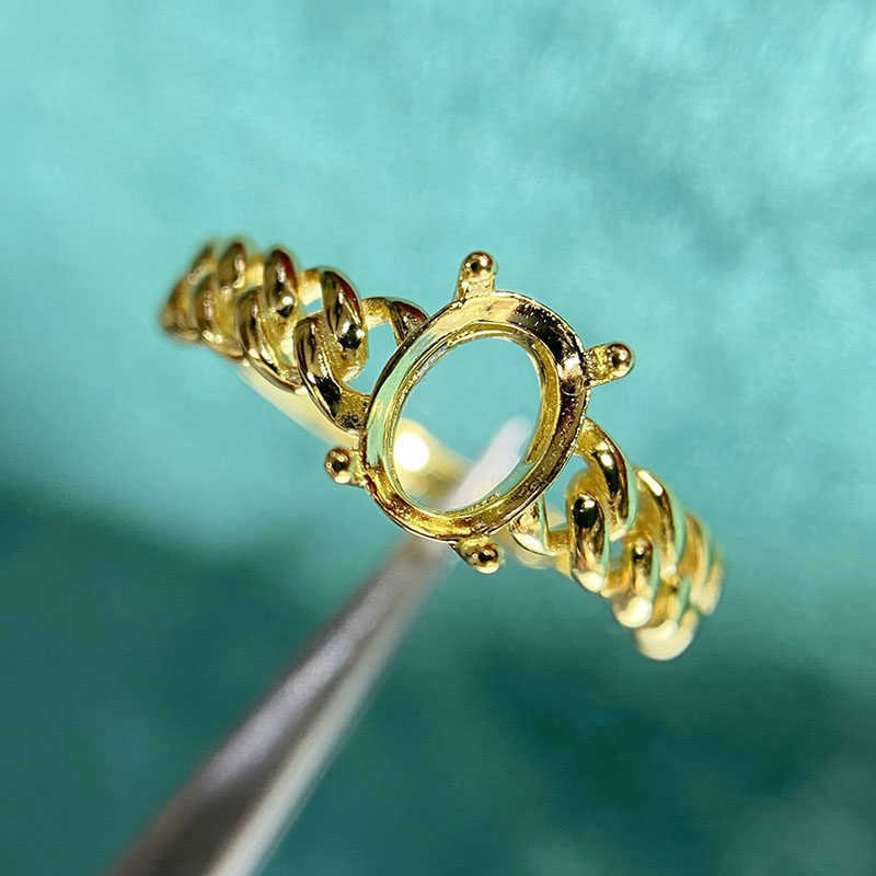 This adjustable ring setting is crafted from high-quality S925 sterling silver and designed for 6×8mm oval stones. The open-ring design allows flexible sizing, making it perfect for DIY jewelry making and custom gemstone mounting.