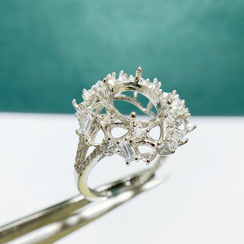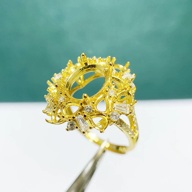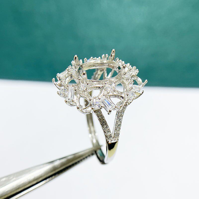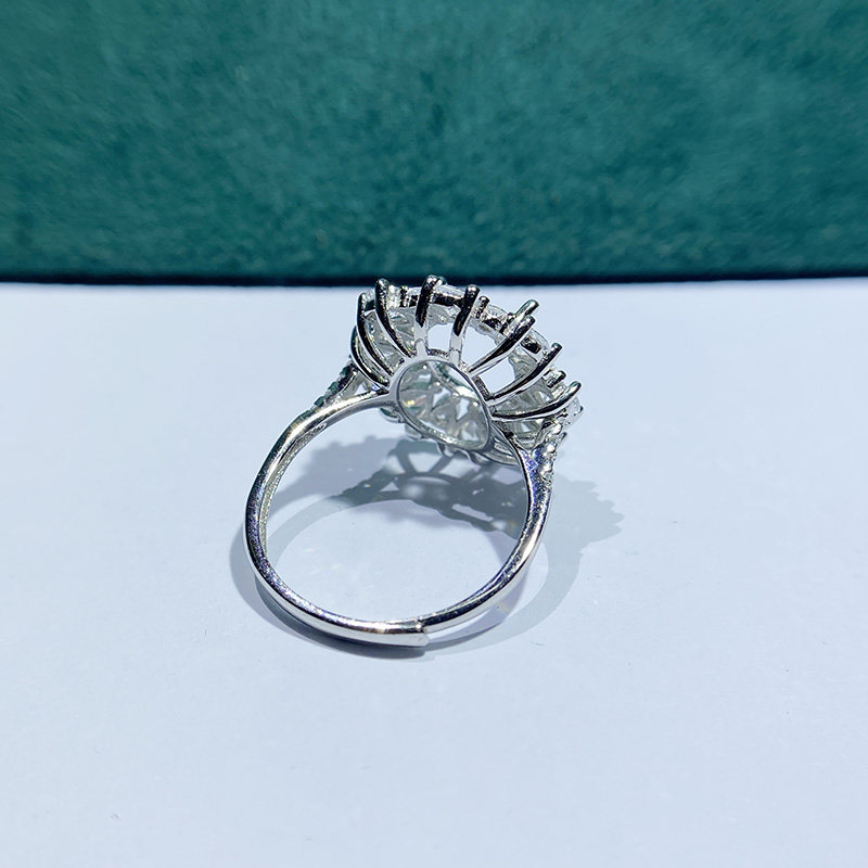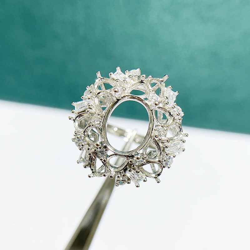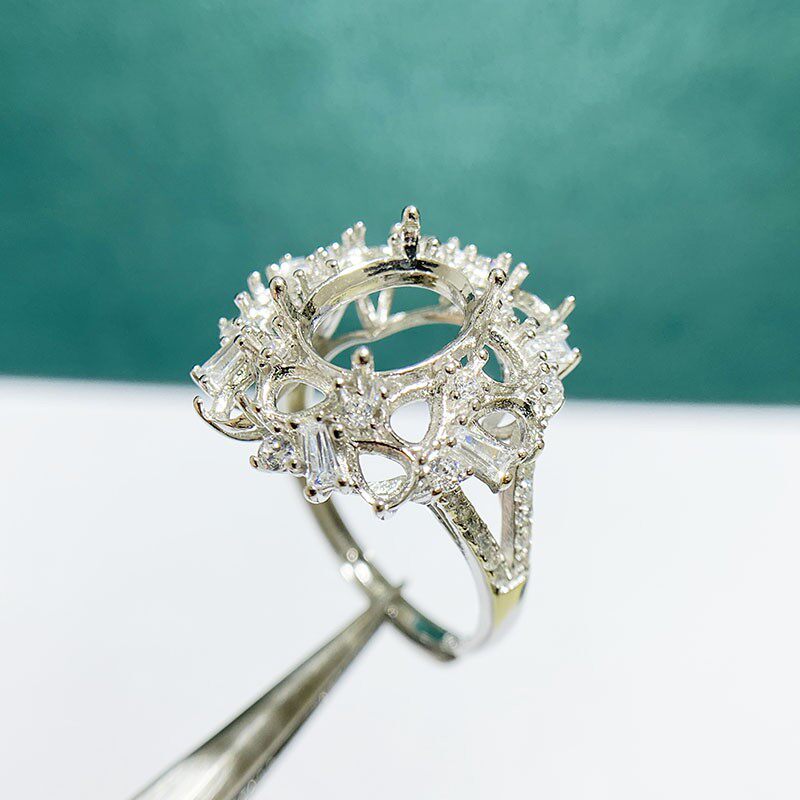 This adjustable cluster ring setting is crafted from high-quality S925 sterling silver and features an 8×10mm oval main stone setting with 3×4mm teardrop accent settings. The open-ring design allows flexible sizing, making it perfect for DIY jewelry making and custom gemstone mounting.