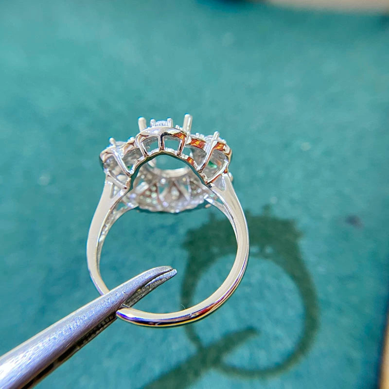 This ring–pendant setting is crafted from high-quality S925 sterling silver and designed specifically for an 8×10mm oval main stone. The adjustable open-ring structure allows flexible sizing, making it suitable for use as either a pendant or a ring. It is ideal for DIY jewelry making, gemstone mounting, and personalized design projects.