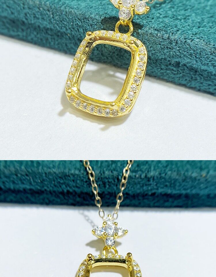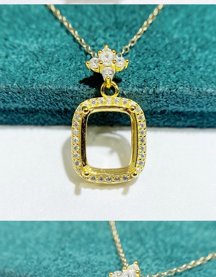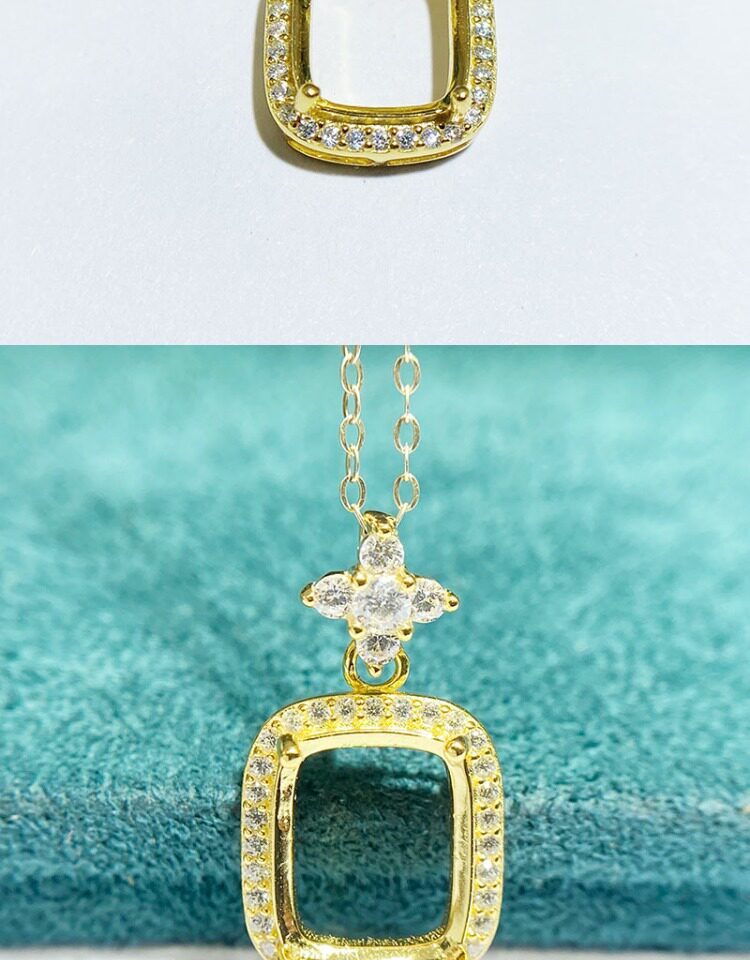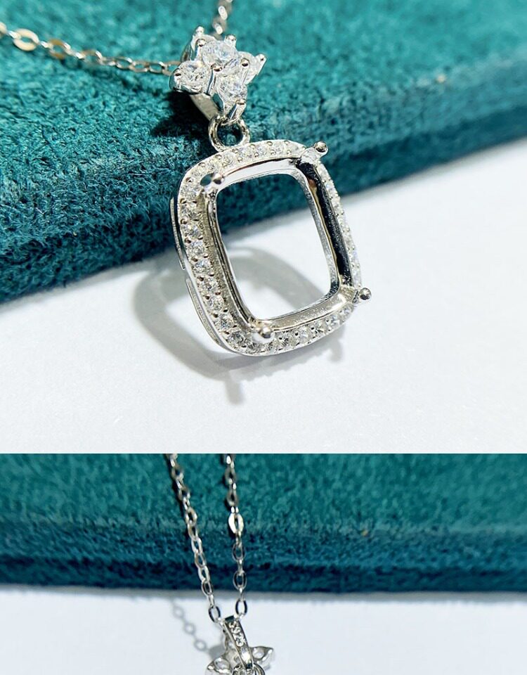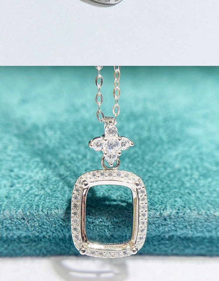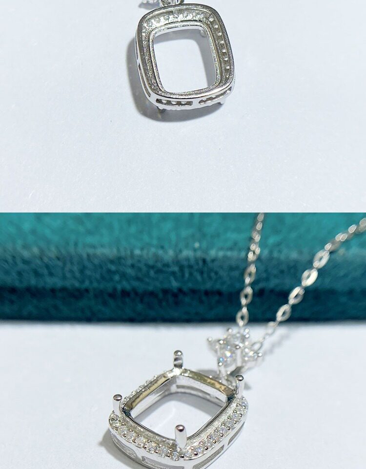 Chunky Cushion 9×11 mm S925 Sterling Silver Pendant Setting, Unset, For Women, Minimalist Style, Fashion Style