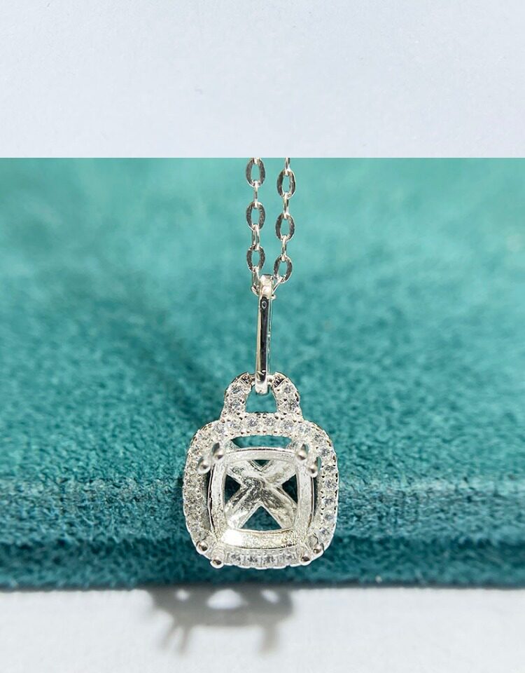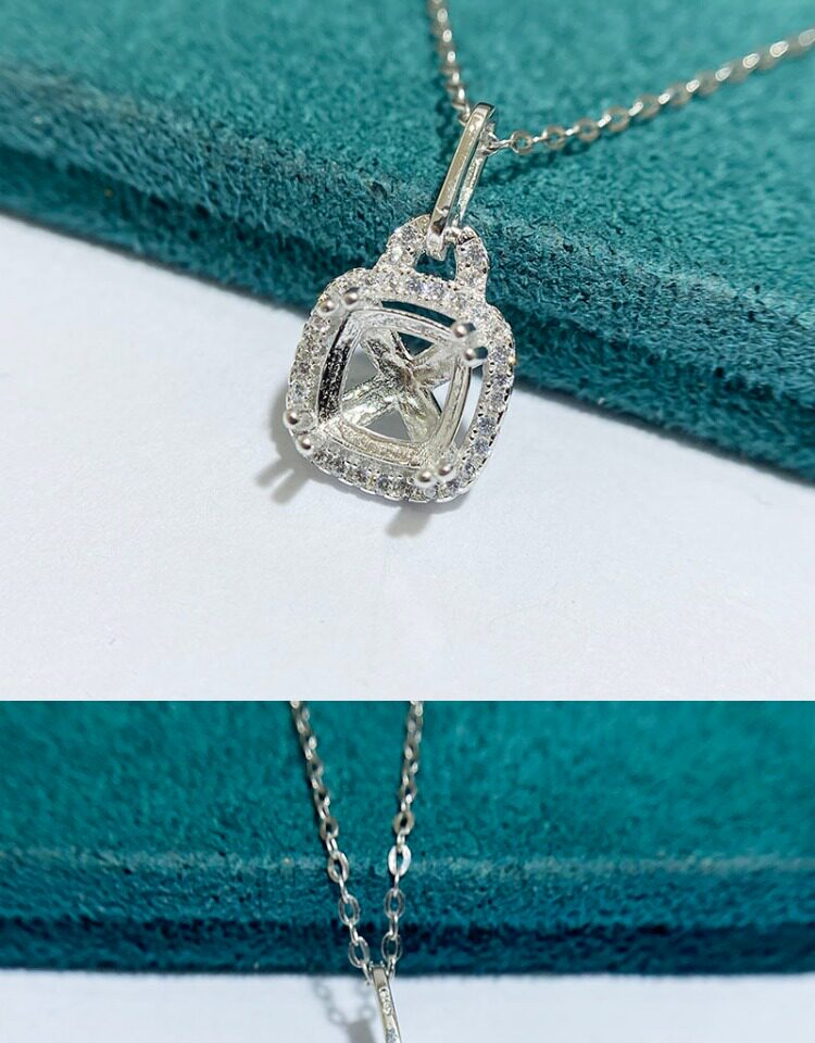 S925 sterling silver Pendant Setting jewelry setting for DIY jewelry making and custom designs. Shape: Square, Cushion. Compatible stone size: 7×7 mm. This empty mount is ideal for setting gemstones, repairs, and handcrafted jewelry projects. Suitable for jewelry makers, studios, and wholesale buyers. Plating color: silver tone.
