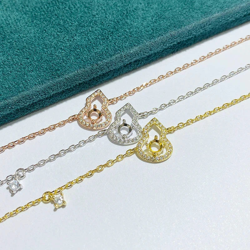 Gourd 4×4 mm S925 Sterling Silver Jewelry Setting, Unset, For Women