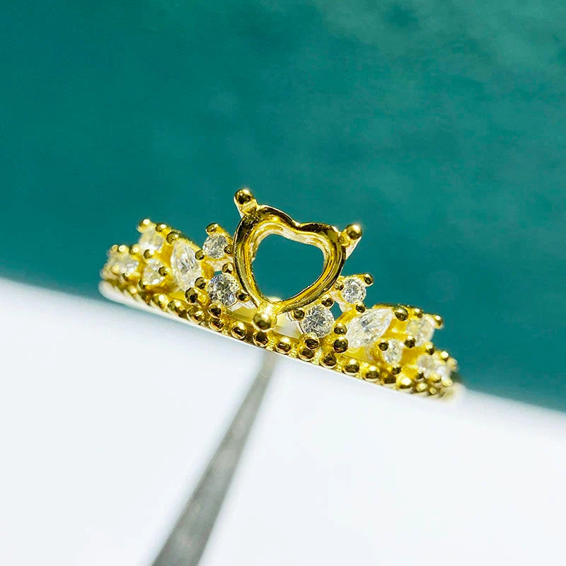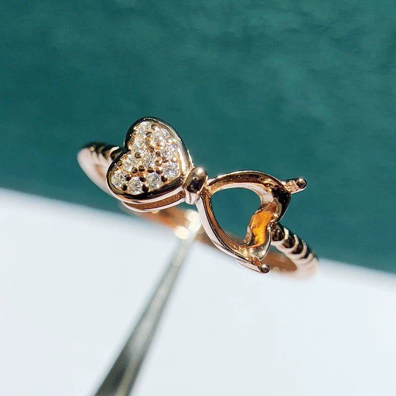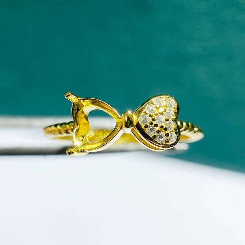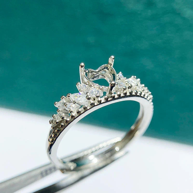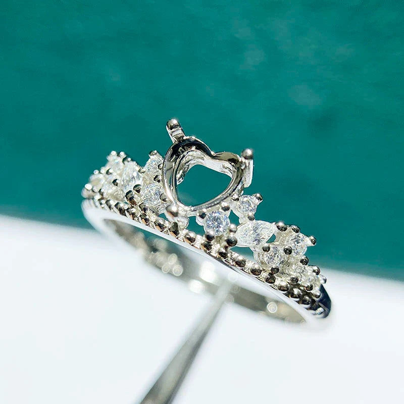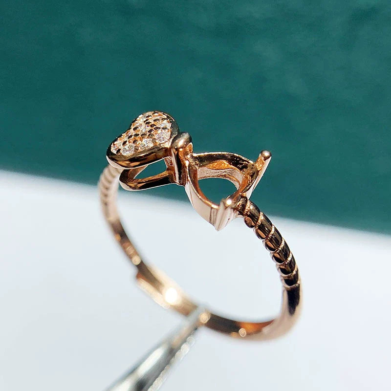 Heart 5 mm / 6 mm S925 Sterling Silver Ring Setting, Adjustable, Unset, For Women