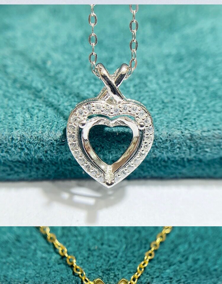 High-quality S925 sterling silver Pendant Setting designed for DIY jewelry making and custom designs. Shape: Heart. Compatible stone size: 8×8 mm. This empty setting is perfect for mounting gemstones, repairs, and handcrafted jewelry projects. Suitable for jewelry makers, studios, and wholesale buyers. Plating color: silver tone.