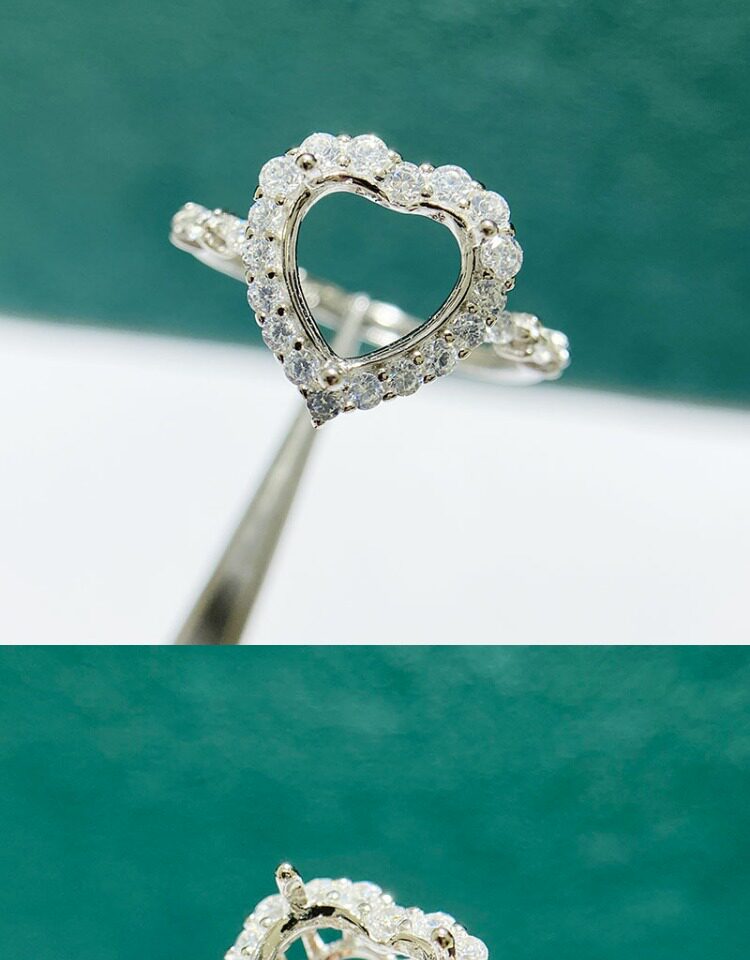 Heart 8×8 mm S925 Sterling Silver Ring Setting, Adjustable, Unset, Fashion Style