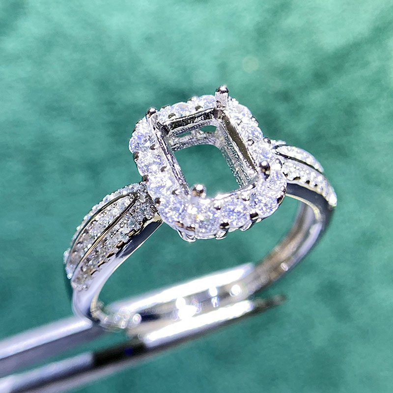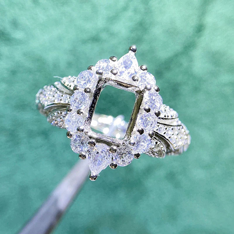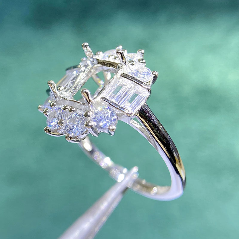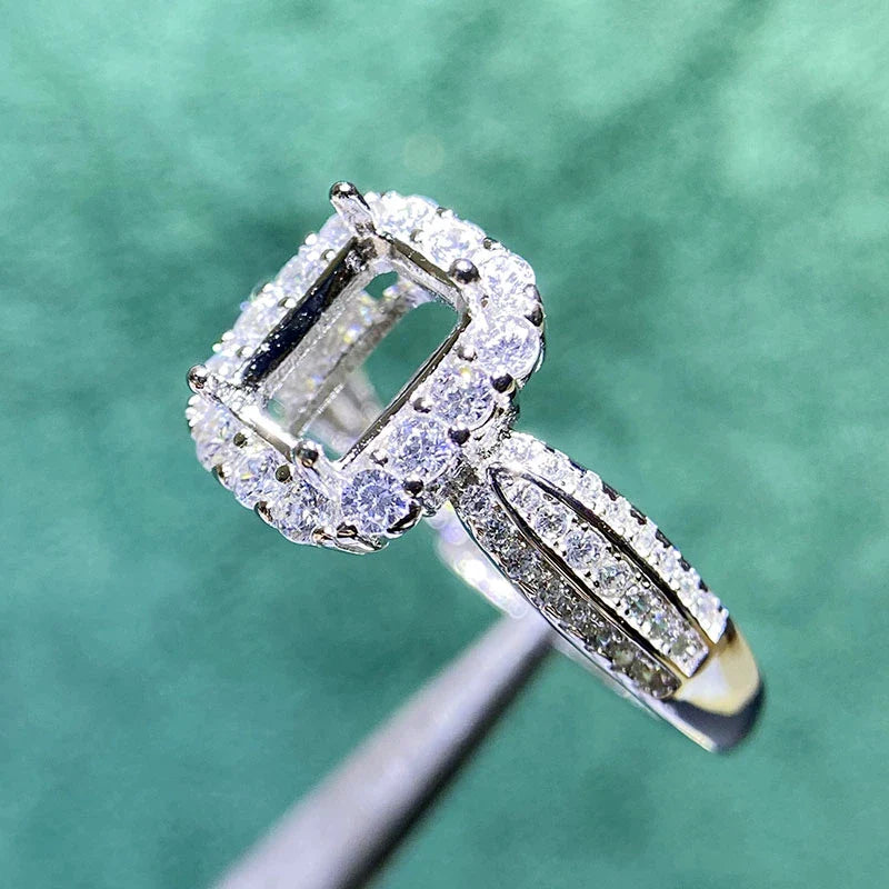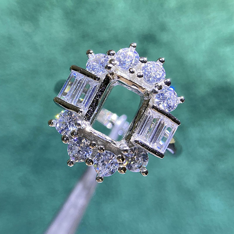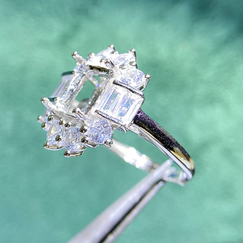S925 sterling silver Ring Setting jewelry setting for DIY jewelry making and custom designs. Shape: Rectangle. Compatible stone size: 6×8 mm, 5×7 mm. This empty mount is ideal for setting gemstones, repairs, and handcrafted jewelry projects. Suitable for jewelry makers, studios, and wholesale buyers.