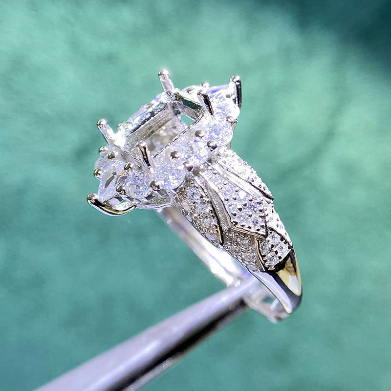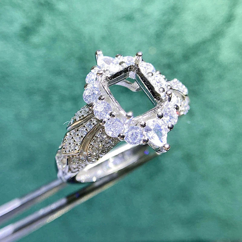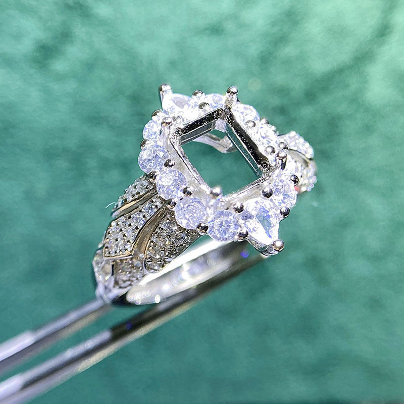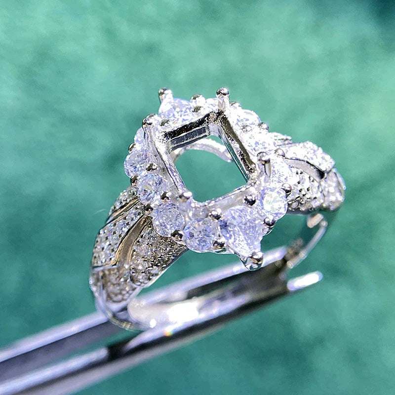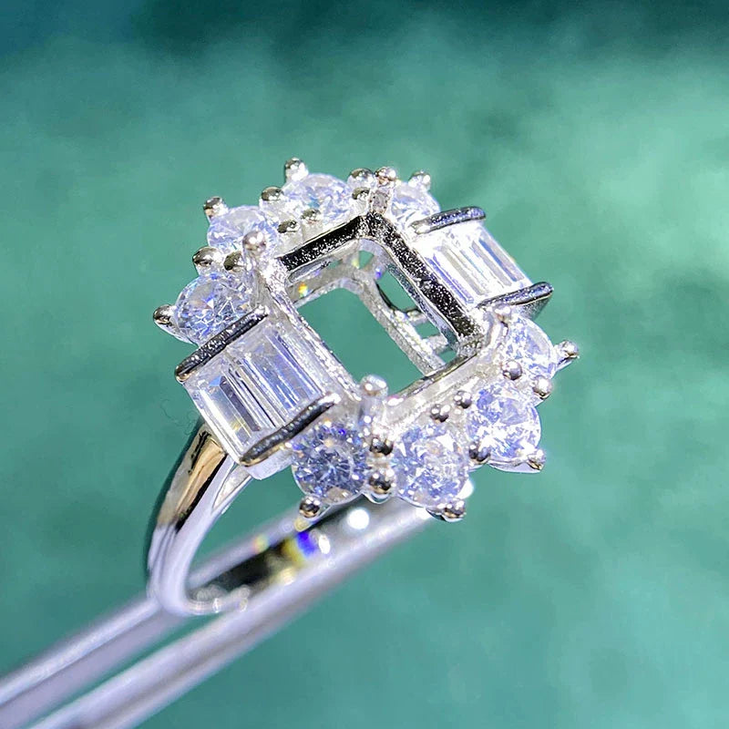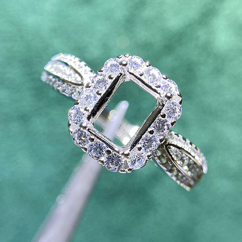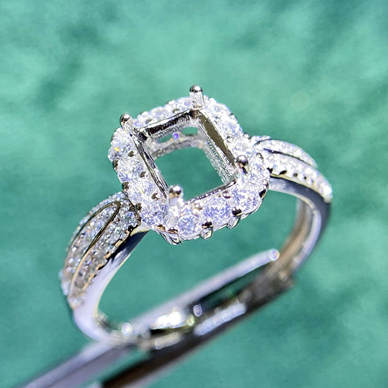 S925 sterling silver Ring Setting jewelry setting for DIY jewelry making and custom designs. Shape: Rectangle. Compatible stone size: 6×8 mm, 5×7 mm. This empty mount is ideal for setting gemstones, repairs, and handcrafted jewelry projects. Suitable for jewelry makers, studios, and wholesale buyers.
