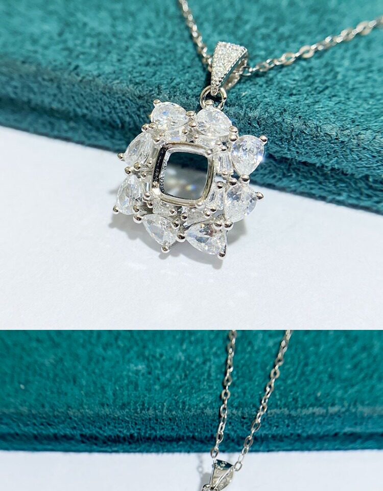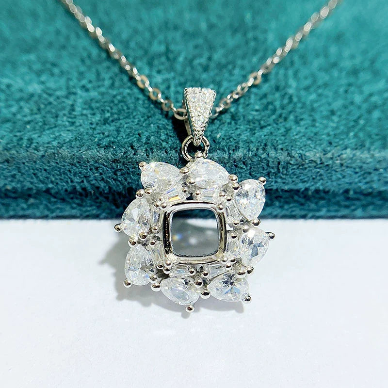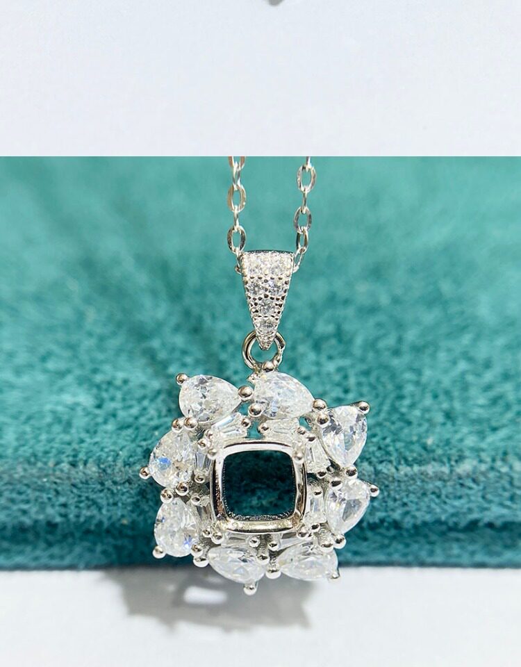 Cushion 6×6 mm S925 Sterling Silver Pendant Setting, Unset, Fashion Style, Light Luxury