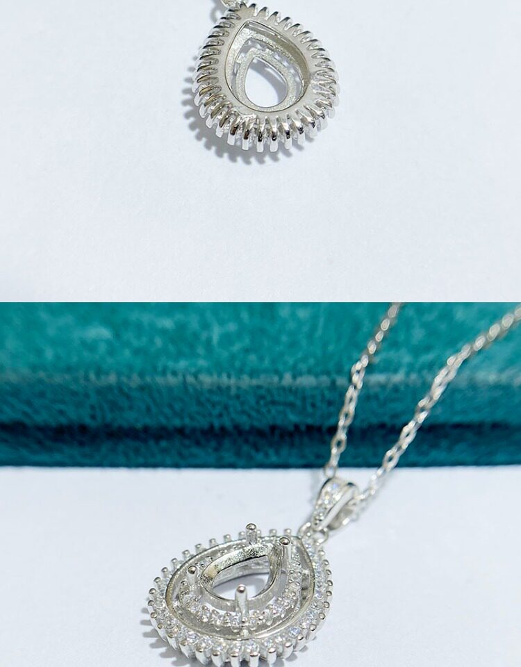 S925 sterling silver Pendant Setting jewelry setting for DIY jewelry making and custom designs. Shape: Pear. Compatible stone size: 6×8 mm. This empty mount is ideal for setting gemstones, repairs, and handcrafted jewelry projects. Suitable for jewelry makers, studios, and wholesale buyers. Plating color: silver tone.