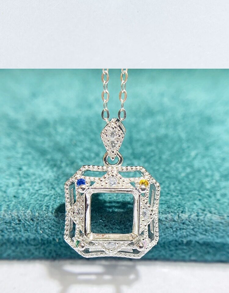 S925 sterling silver Pendant Setting jewelry setting for DIY jewelry making and custom designs. Shape: Square. Compatible stone size: 8×8 mm. This empty mount is ideal for setting gemstones, repairs, and handcrafted jewelry projects. Suitable for jewelry makers, studios, and wholesale buyers. Plating color: silver tone.