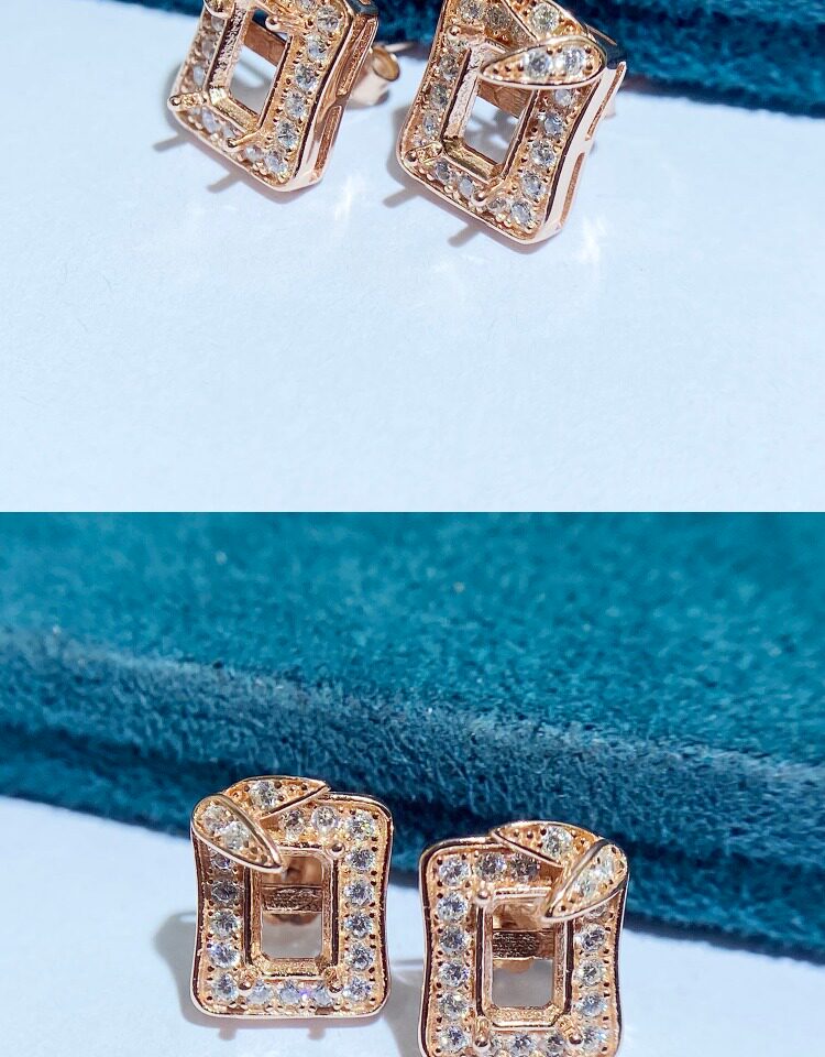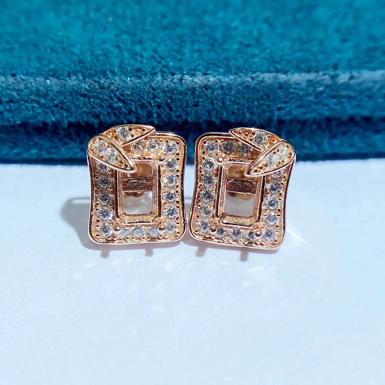 S925 sterling silver Earring Setting jewelry setting for DIY jewelry making and custom designs. Shape: Rectangle. Compatible stone size: 4×6 mm. This empty mount is ideal for setting gemstones, repairs, and handcrafted jewelry projects. Suitable for jewelry makers, studios, and wholesale buyers.