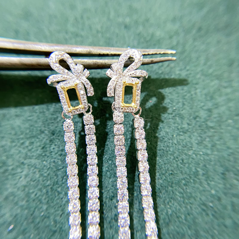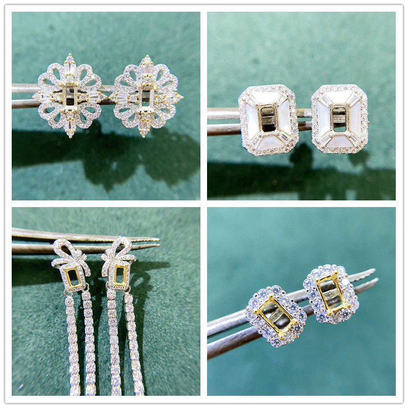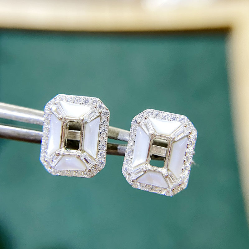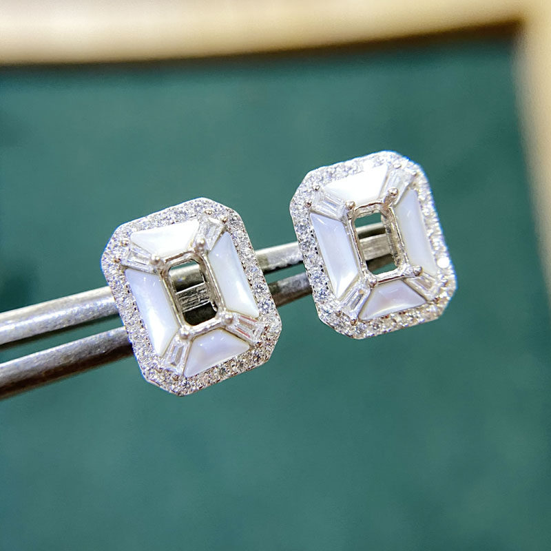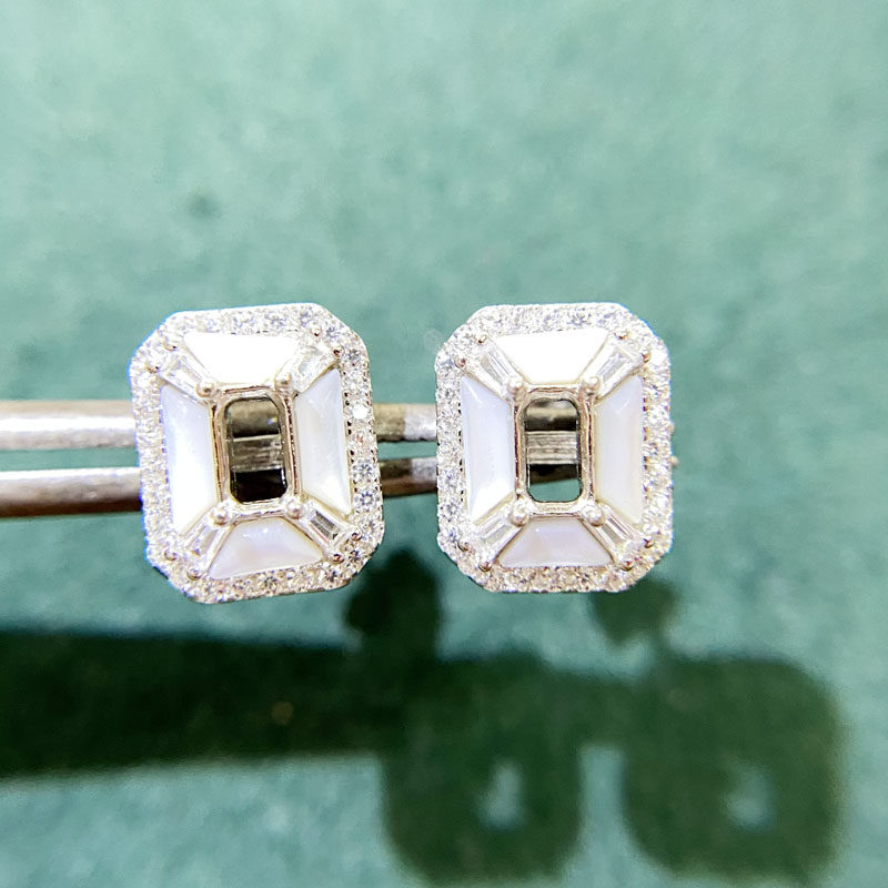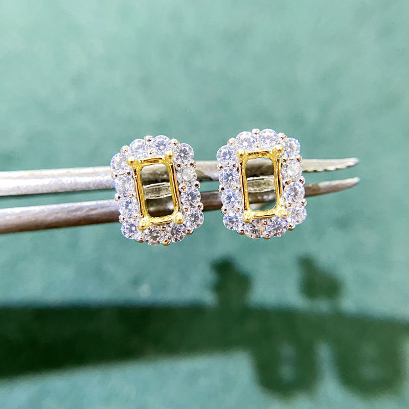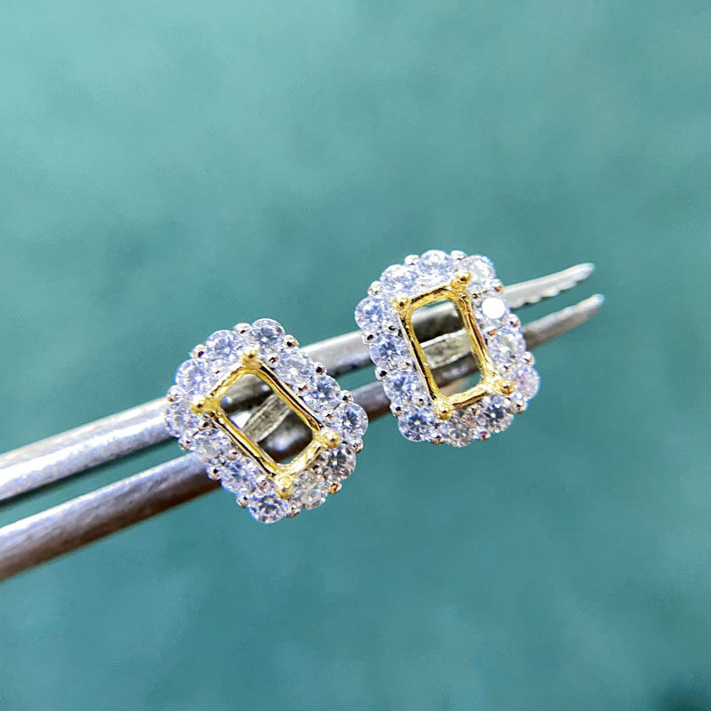 Square 3×5 mm S925 Sterling Silver, 18K Gold Plated Earring Setting, Unset, For Women