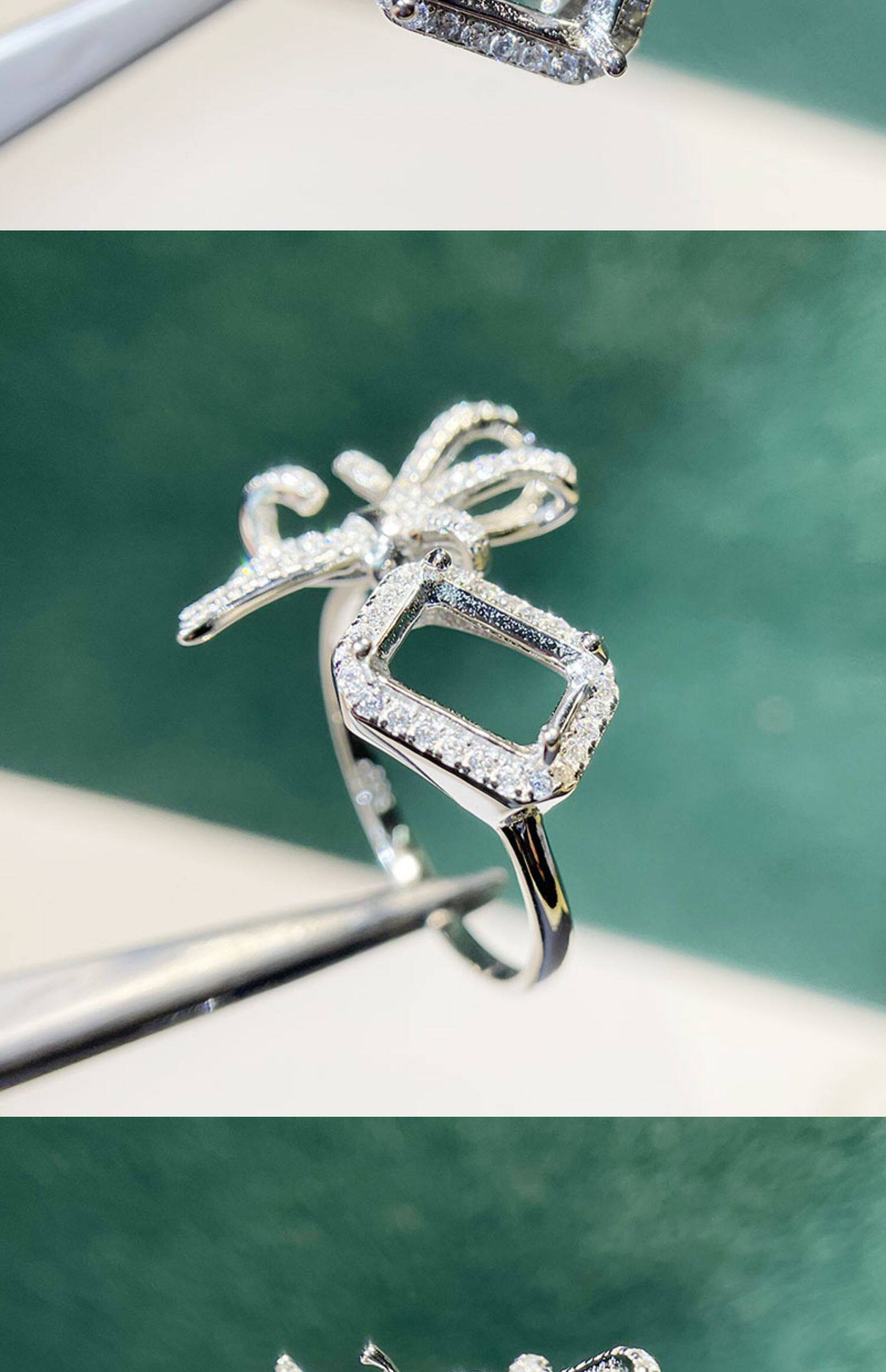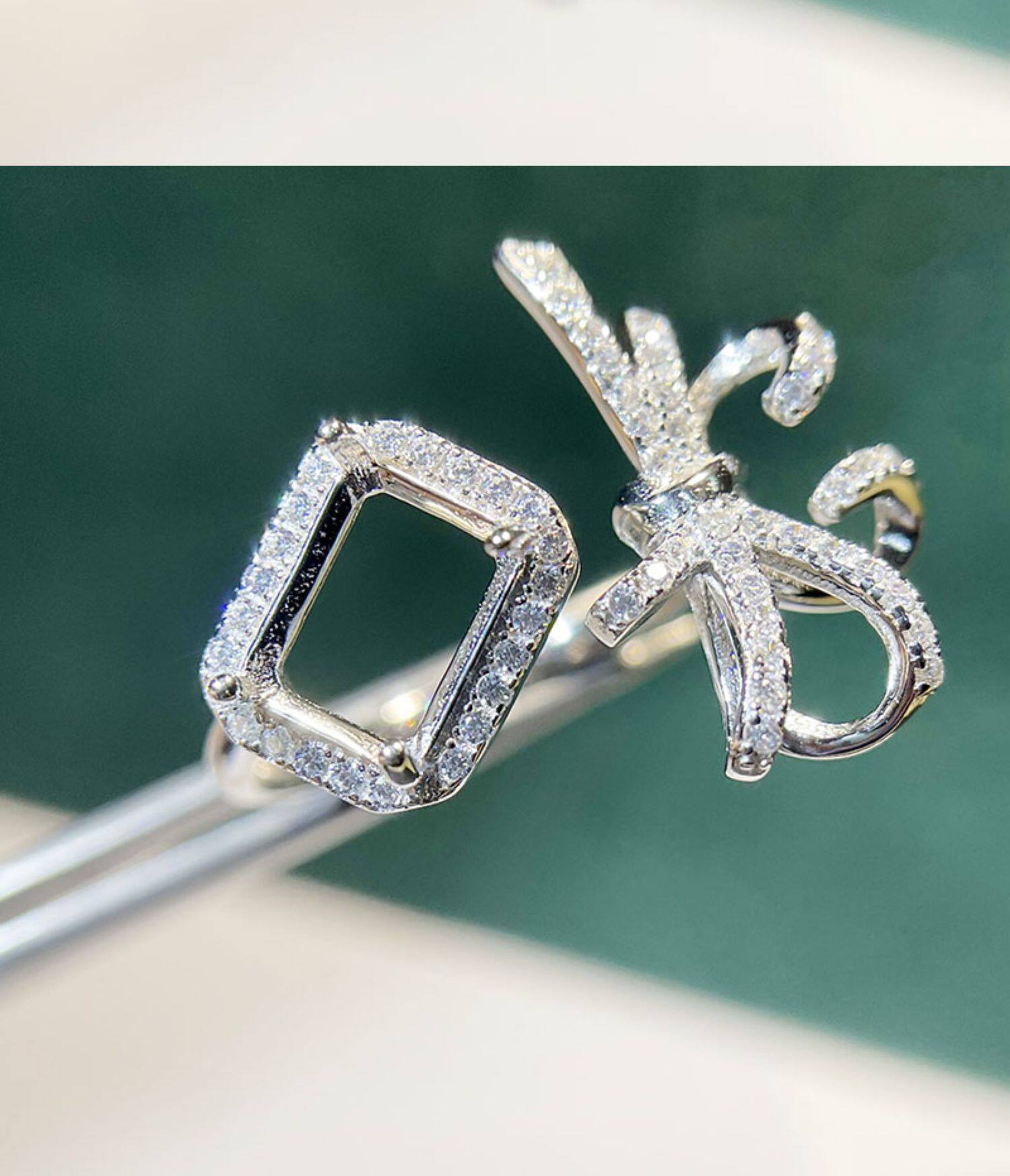 Square 6×8 mm S925 Sterling Silver Ring Setting, Unset Mount, For Women