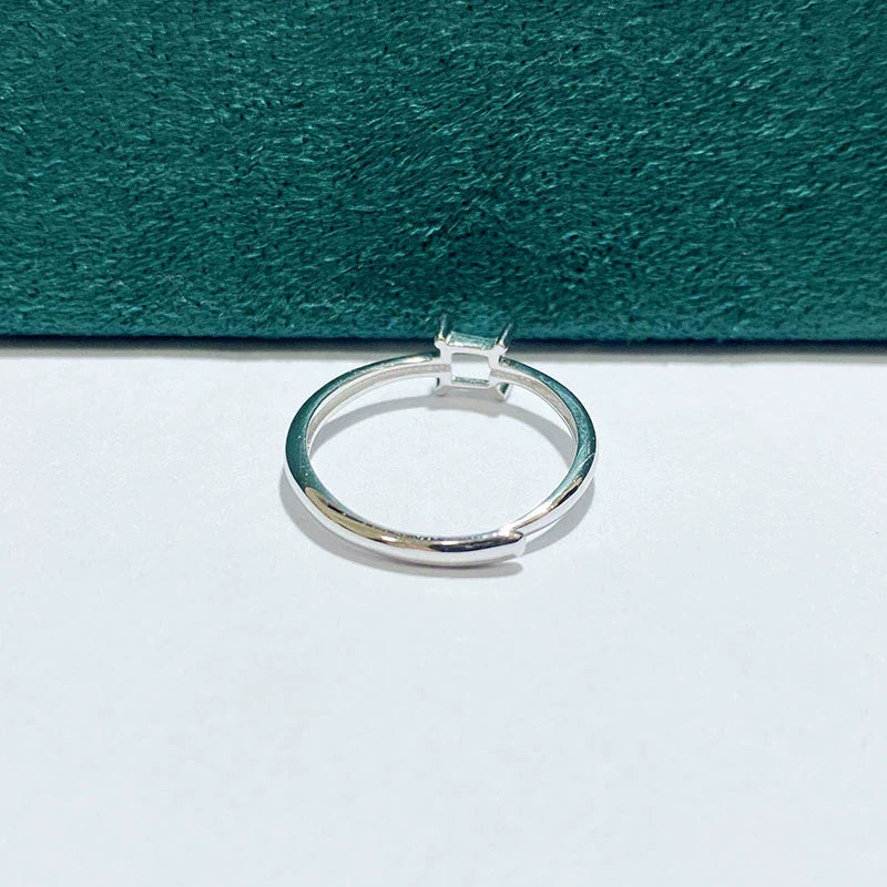 Square S925 Sterling Silver Ring Setting, Adjustable, Unset