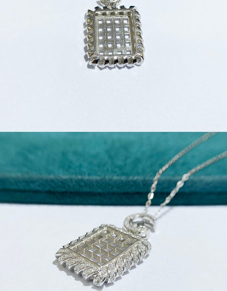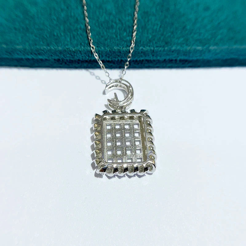 Square 3×3 mm S925 Sterling Silver Pendant Setting, Unset, Cluster Setting, Vintage Style, Light Luxury